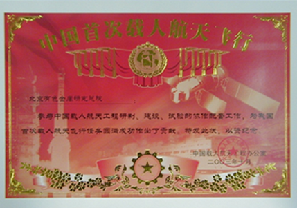 2012年12月,中國航天科技集團公司對有研總院為我國首次載人交會對接任務(wù)天宮一號、神州九號和長征二號F研制配套所做出的貢獻致函感謝