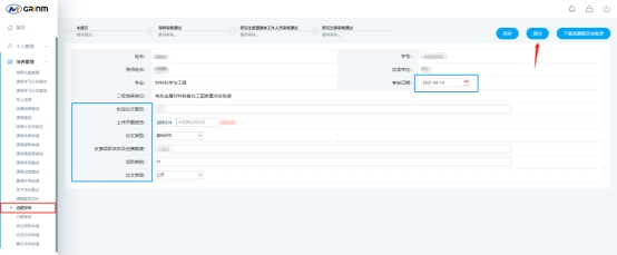 (2)研究生應在答辯前,登錄研究生管理信息系統(tǒng),在“培養(yǎng)管理”→“選題報告”中下載空白《選題報告審核表》,并根據實際情況填寫相應內容。其余內容在答辯前不做修改及填寫。