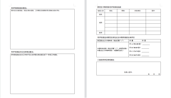 (3)各二級(jí)培養(yǎng)單位研究生管理工作人員應(yīng)在答辯后完成《中期考核登記表》的填報(bào),并請(qǐng)考評(píng)小組成員簽字,考評(píng)專家組中必須包含工程碩博士的企業(yè)導(dǎo)師及校方導(dǎo)師。