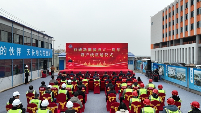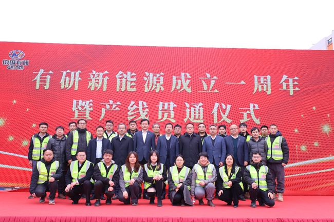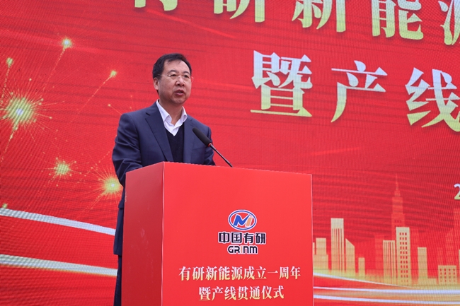 儀式上,有研新能源總經(jīng)理張向軍介紹了項(xiàng)目情況和工作進(jìn)展,胡建軍、胡軍分別致辭,表達(dá)對(duì)公司成立一周年和產(chǎn)線貫通的祝賀。