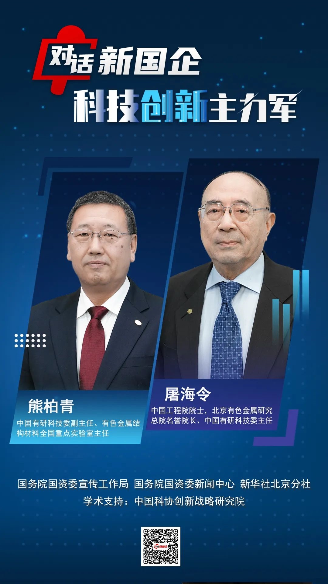 近日,中國工程院院士、北京有色金屬研究總院名譽院長、中國有研科技委主任屠海令,中國有研科技委副主任、有色金屬結(jié)構(gòu)材料全國重點實驗室主任熊柏青,受邀參加“對話新國企·科技創(chuàng)新主力軍”系列融媒體訪談,講述在這條布滿挑戰(zhàn)的攀登之路上,中國科技工作者正以“十年磨一劍”的定力與“敢為天下先”的魄力,書寫新時代的材料傳奇。