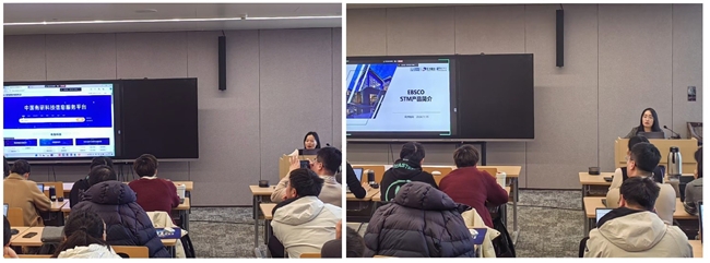 培訓(xùn)會邀請了中國知網(wǎng)科技企業(yè)產(chǎn)品項(xiàng)目部馬淑偉和國際資源合作部寧靜兩位老師授課。老師介紹了“中國有研科技信息服務(wù)平臺”的使用方法,針對基于語義的智能檢索、AI智能助手、個(gè)人中心功能以及EBSCO-STMS數(shù)據(jù)庫檢索、閱讀及輔助工具應(yīng)用等進(jìn)行了詳細(xì)地講解和演示,并對參訓(xùn)人員進(jìn)行了答疑和交流。