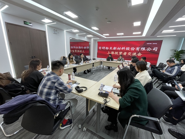 12月6日,有研粉材在證券日?qǐng)?bào)上海路演中心舉辦投資者交流活動(dòng),吸引了數(shù)十家上海知名投資機(jī)構(gòu)和基金公司參與。此次交流活動(dòng)的重點(diǎn)是與投資者進(jìn)行深入溝通,分享公司的最新動(dòng)態(tài)和發(fā)展規(guī)劃,解答投資者疑問(wèn)。