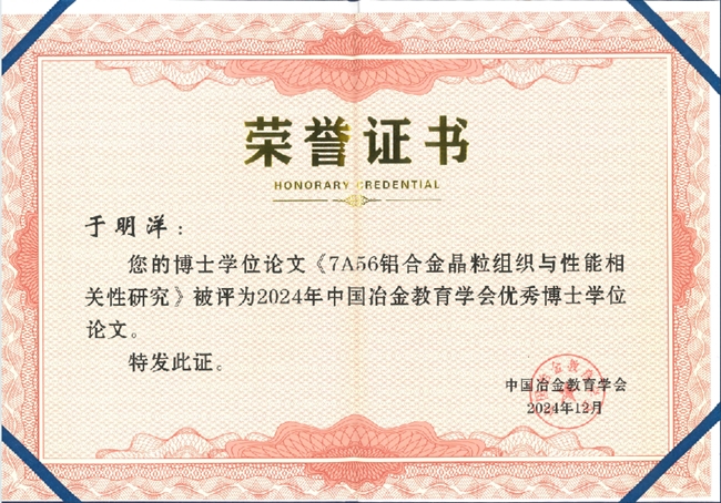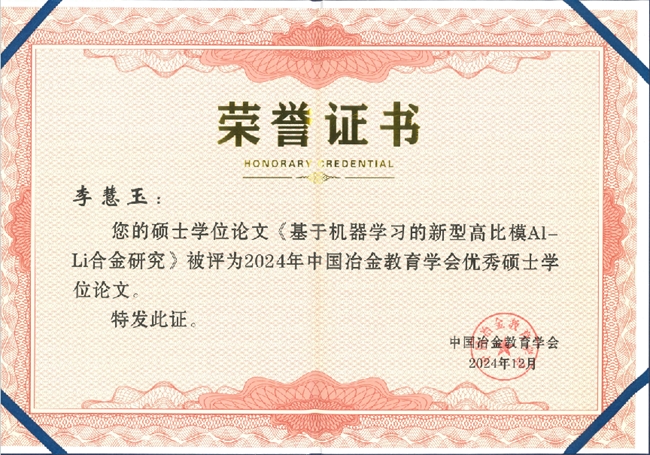 近日,中國冶金教育學(xué)會公布2024年優(yōu)秀博(碩)士學(xué)位論文評選結(jié)果,我院1篇博士學(xué)位論文、1篇碩士學(xué)位論文獲評優(yōu)秀論文。
