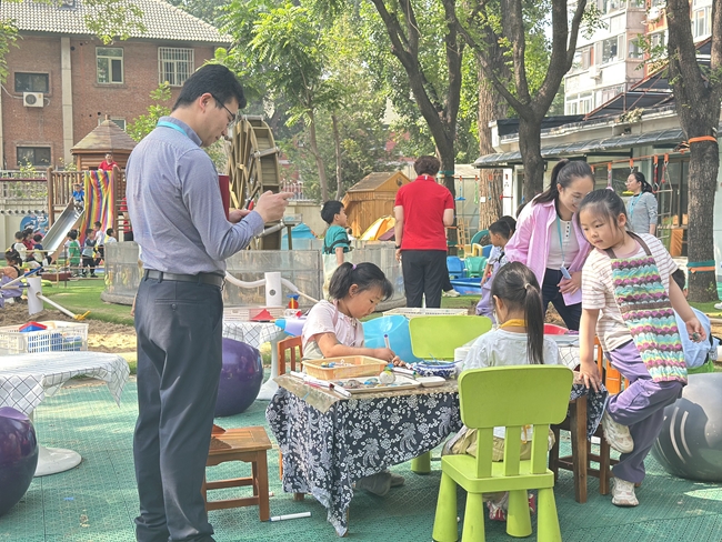 近日,有研幼兒園承擔(dān)了海淀區(qū)第19教研聯(lián)盟現(xiàn)場教研,開展“落實《評估指南》的自主游戲?qū)嵺`專題研修”活動?,F(xiàn)場教研以“一日生活中促進幼兒自主性發(fā)展的研究——自主游戲的觀察與分析”為主題,通過現(xiàn)場觀摩和研討活動,進一步提高教師觀察與分析幼兒游戲行為的專業(yè)能力。海淀區(qū)教師進修學(xué)校學(xué)前教育研修室教研員田彭彭受邀擔(dān)任活動指導(dǎo)專家,來自16所幼兒園近40名教師參與此次活動。