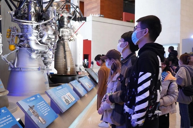 進(jìn)入展廳,同學(xué)們仔細(xì)觀察展品模型,大到火箭、發(fā)動(dòng)機(jī)、空間站,小到航天食品、航天服等都能成功喚起大家的好奇心。一些研究生黨員作為航天愛好者主動(dòng)做起了講解,分享航天工程與航天材料有關(guān)知識(shí)。大家時(shí)而專注交流,時(shí)而凝神觀看,全身心地沉浸在豐富詳實(shí)的展覽內(nèi)容之中。