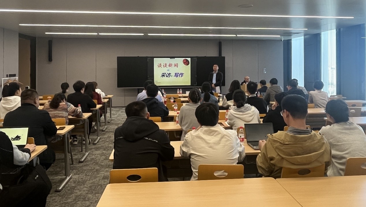 在講座中,徐老師從多年新聞行業(yè)實踐經(jīng)驗出發(fā),結(jié)合實際案例,為大家深入淺出分享了新聞報道的定義、原則以及實踐經(jīng)驗,內(nèi)容包括新聞?wù)鎸嵭浴⑿侣劸€索獲取、新聞采寫技巧、新聞評論撰寫、新聞?wù)掌臄z等方面。