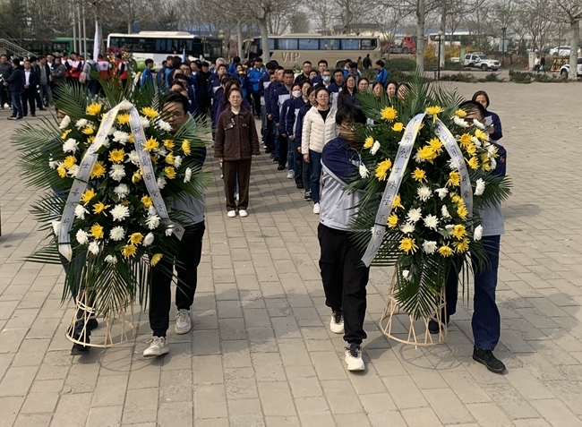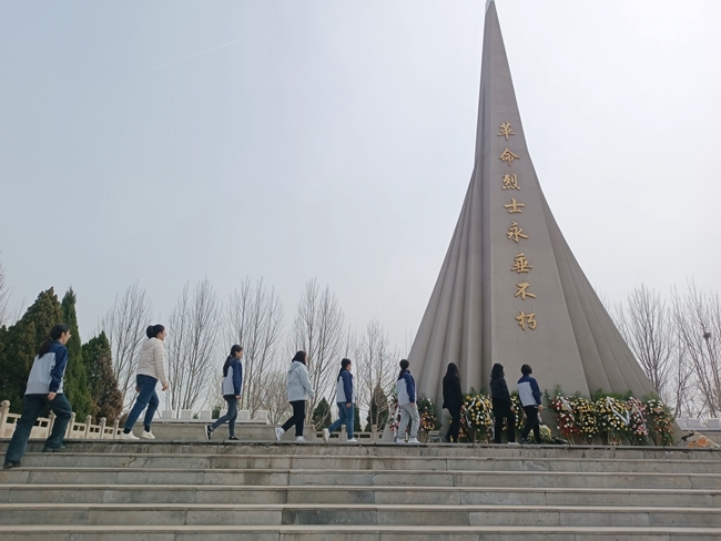 在烈士紀念碑前,黨員及團員代表們列隊肅立,齊唱國歌《義勇軍進行曲》,向革命烈士敬獻花籃、鞠躬默哀,表達對革命先烈的緬懷、悼念及深深的敬意。