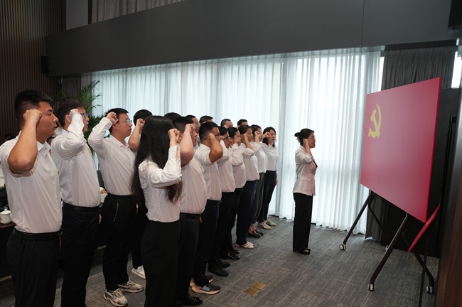 大會(huì)在莊嚴(yán)的國歌聲中拉開序幕,新發(fā)展黨員面向黨旗鄭重宣誓,許下為共產(chǎn)主義事業(yè)奮斗終身的堅(jiān)定承諾。