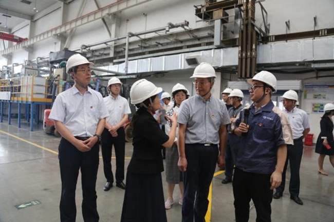 有研稀土黨總支書記、總經(jīng)理劉榮輝在展室向王振海局長一行介紹了中國有研、有研稀土的科技與產(chǎn)業(yè)發(fā)展簡況,來訪客人先后參觀了公司院士工作站、稀土國家工程研究中心實驗室及產(chǎn)線,詳細了解了稀土提取分離、稀土新材料的研發(fā)、工程化及生產(chǎn)情況。