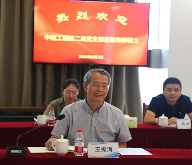 為全面落實習近平總書記關于推動稀土產(chǎn)業(yè)發(fā)展的重要指示批示精神,共謀稀土行業(yè)綠色可持續(xù)發(fā)展之路,推動稀土高質量發(fā)展,9月3日,中國工程院二局黨支部與有研稀土黨總支在燕郊基地開展“黨建引領促提升,聯(lián)學聯(lián)建共發(fā)展”聯(lián)學聯(lián)建活動。中國工程院二局黨支部書記、局長王振海,副局長焦棟、丁養(yǎng)兵,中國有研首席科學家、稀土國家工程研究中心主任、中國工程院院士黃小衛(wèi),中國有研副總經(jīng)理、董事會秘書、總法律顧問黃倬出席活動。有研新材黨委副書記、總經(jīng)理,有研稀土董事長于敦波主持座談交流會。
