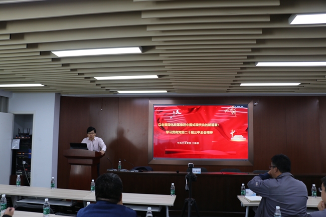 簽約儀式后,公司黨總支邀請中央黨校(國家行政學(xué)院)王海濱教授為全體黨員進(jìn)行了專題講座。王海濱教授以“深入學(xué)習(xí)貫徹黨的二十屆三中全會精神”為主題,從全會核心內(nèi)容、三大板塊、15個部分及60條具體措施等方面進(jìn)行了全面、深入的解讀。他緊密聯(lián)系實際工作場景,生動闡釋了會議精神的實質(zhì),并強調(diào)要將這些精神內(nèi)化于心、外化于行,轉(zhuǎn)化為推動企業(yè)改革與發(fā)展的重要動力。