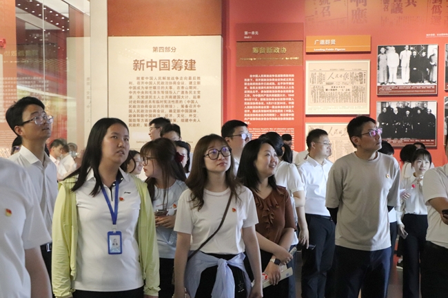 在香山革命紀(jì)念館,大家駐足于《為新中國(guó)奠基》主題展覽前, 一件件文物、一張張圖片、一段段影像資料,全景式生動(dòng)呈現(xiàn)了老一輩革命家運(yùn)籌帷幄、決勝千里的恢弘篇章。在“進(jìn)京趕考”等展區(qū)前,深刻感受到了革命先輩們謙虛謹(jǐn)慎、不驕不躁、艱苦奮斗的優(yōu)良作風(fēng)和革命精神,深切感受到中國(guó)共產(chǎn)黨“一切為了人民”的初心與擔(dān)當(dāng)。