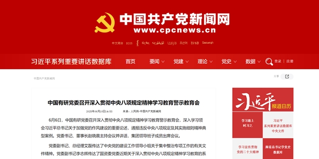 6月10日中國(guó)共產(chǎn)黨新聞網(wǎng)刊發(fā)中國(guó)有研召開警示教育會(huì)情況