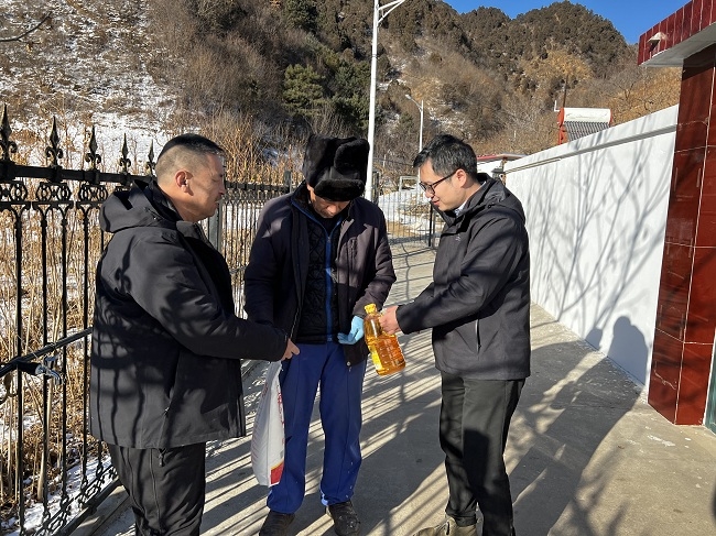 1月16日,國(guó)聯(lián)研究院第二黨支部書記方彥彥、紀(jì)檢委員崔義前往懷柔區(qū)湯河口鎮(zhèn)東灣子村開展迎新春走訪慰問(wèn),東灣子村黨支部書記高財(cái)及支委委員等陪同走訪慰問(wèn)低保戶家庭,了解老人的身體和生活狀況,并送去慰問(wèn)品及新年祝福。