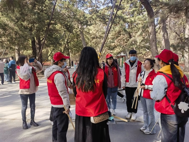春日的頤和園風景如畫、游人如織,環(huán)境雖好,但在不易被人注意的角落,仍有不少煙頭、食品包裝、易拉罐拉環(huán)等不易降解的垃圾存在。團員青年通過撿拾清理垃圾,勸阻亂扔垃圾、踐踏植被等行為,為游客指引路線,以及提供其他便民服務等形式,傳承雷鋒精神,弘揚“奉獻、友愛、互助、進步”的志愿精神,在游人面前充分展現(xiàn)了國合通測青年昂揚向上的精神風貌。