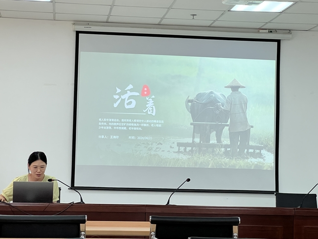 財務管理部王海珍介紹了《活著》,分享作者創(chuàng)作思路、主人公及家人的經(jīng)歷和心理變化,以及自己對于生活的感悟。