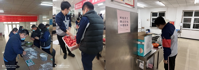有研國晶輝團(tuán)支部不定期給職工分發(fā)新鮮水果和蔬菜,并聯(lián)合條保部開展“包餃子,吃餃子”活動,同時成立青年“后勤小分隊”,提供全方位服務(wù)保障,不斷豐富駐廠職工生活、飲食多樣性,保障職工身體健康,使駐廠職工感受到家的溫暖。