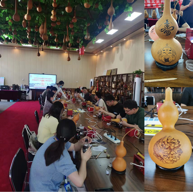 活動中,廣大團員青年來到柳莊戶村史館,參觀館內(nèi)陳列的各種老物件,通過觀看現(xiàn)場逼真地農(nóng)耕勞作場景,讓大家深切的感受到了中國鄉(xiāng)村從落后的農(nóng)耕生產(chǎn)向現(xiàn)代化農(nóng)業(yè)的發(fā)展變遷,充分體會黨民同心的人文情懷。隨后,大家在北京葫蘆藝術莊園愛國主義教育基地,凝聽非遺傳承人“葫蘆牛”詳細介紹中國葫蘆文化、葫蘆藝術,體驗火繪葫蘆藝術,欣賞美輪美奐的火繪葫蘆作品,通過親自動手實踐在葫蘆表面繪出精致圖案。