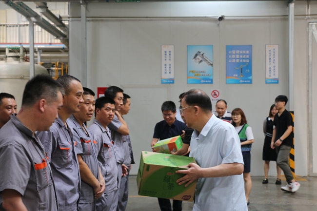 集團全體領(lǐng)導班子成員分別深入北京懷柔、昌平,河北廊坊、燕郊,山東德州、樂陵等園區(qū),走進車間和班組,看望慰問高溫作業(yè)一線職工,將集團黨委的關(guān)心關(guān)懷關(guān)愛送到基層、把精心準備的防暑降溫慰問品送到職工手上。領(lǐng)導班子與一線職工親切交談,仔細詢問生產(chǎn)、生活情況和身體狀況,囑咐職工注意防暑降溫,注意身體健康和個人安全。同時要求各單位抓好安全生產(chǎn)工作,堅決遏制安全事故發(fā)生,妥善安排班次和職工作息時間,讓職工能夠安心工作、舒心生活。