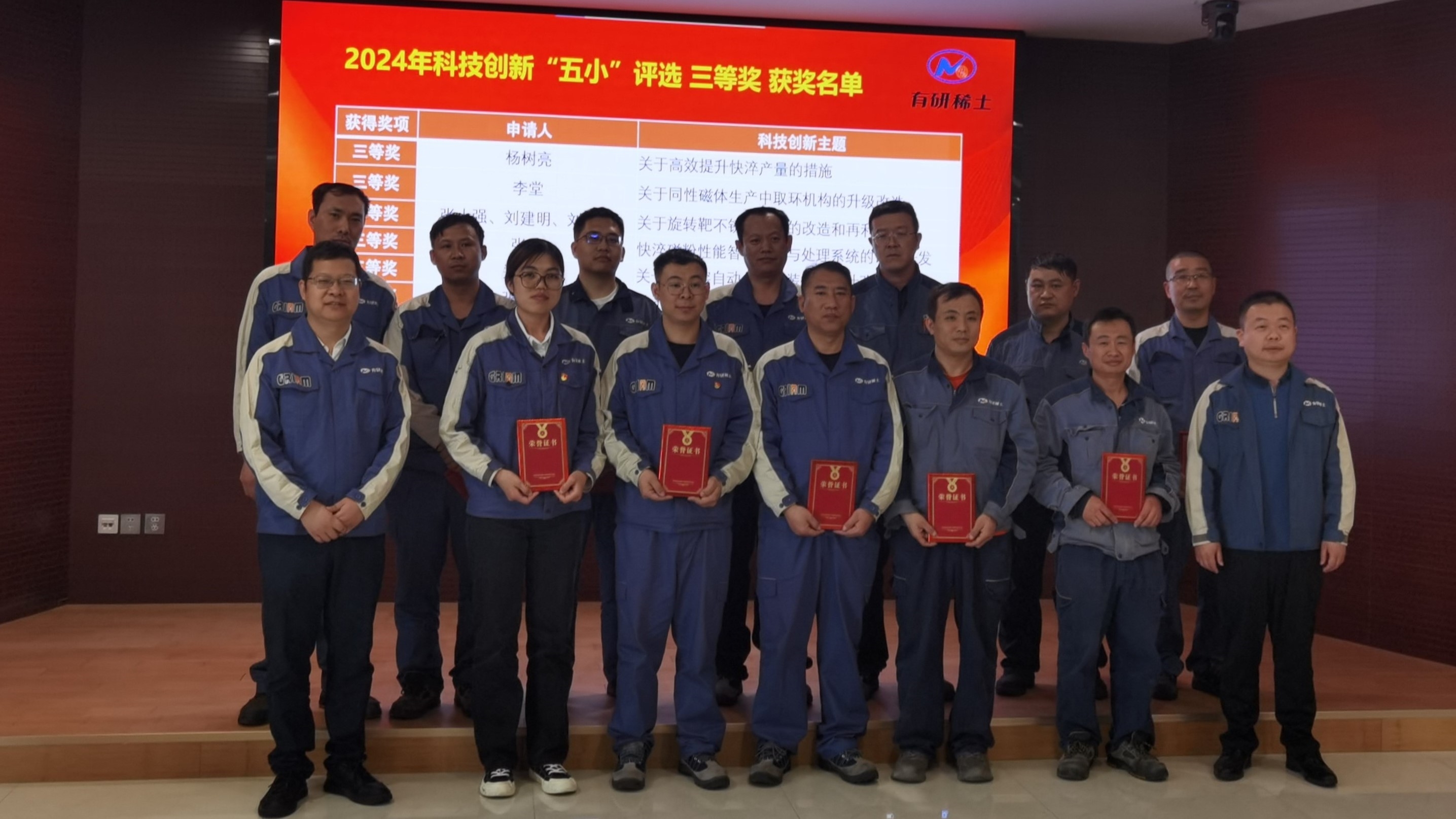 表彰大會(huì)上,公司黨總支副書記、副總經(jīng)理、工會(huì)主席許國(guó)棟宣讀了《有研稀土關(guān)于表彰2024年度科技創(chuàng)新“五小”的決定》,對(duì)獲得表彰項(xiàng)目的員工表示祝賀,對(duì)所有員工的辛勤工作表示感謝,并向全公司勞動(dòng)者致以節(jié)日問候。