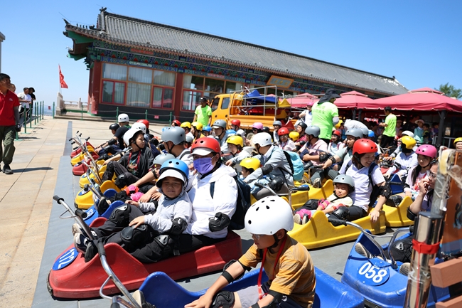 最先開展的登山活動(dòng)非常考驗(yàn)體力和意志。孩子們或三兩成隊(duì),腳步輕快地競(jìng)速上山,如靈動(dòng)的小鹿穿梭于山林間;或結(jié)伴而行,走走停停,歡聲笑語隨山風(fēng)飄散在濃密的綠葉之上。下行的山地滑車項(xiàng)目最受孩子們喜愛。在家長(zhǎng)的陪伴下,孩子們?nèi)卑踩b備坐上滑車,沿著蜿蜒的軌道穿梭于山林之間,感受疾馳風(fēng)速與自然美景,山林間回蕩著孩子們驚呼和歡笑。