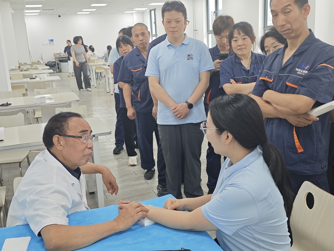 隨后,張教授與河北燕達(dá)醫(yī)院科室醫(yī)生針對(duì)職工個(gè)人情況進(jìn)行義診,內(nèi)容包含中醫(yī)號(hào)脈、血壓血糖測(cè)量、測(cè)量心電圖等內(nèi)容,現(xiàn)場(chǎng)為職工提供個(gè)體化的健康指導(dǎo)。