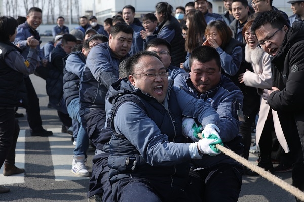“1、2加油,1、2加油……”,大年初十中午的陽光溫暖明媚,有研稀土燕郊基地內(nèi)人頭攢動(dòng),吶喊助威聲此起彼伏,2022年新春“虎虎生威”拔河比賽正在這里隆重舉行。