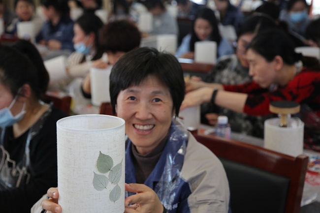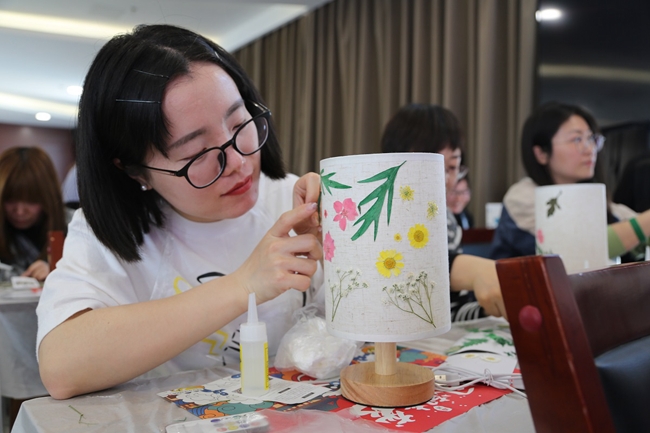 授課老師為大家講解了花草紙工藝的歷史傳承及制作工藝和步驟。在授課教師的細(xì)心指導(dǎo)下,大家紛紛動(dòng)手,認(rèn)真學(xué)習(xí)花草臺(tái)燈的制作技藝,一個(gè)多小時(shí)后,在場(chǎng)每位學(xué)員都成功完成一份屬于自己的作品,獲得了屬于自己的節(jié)日禮物。