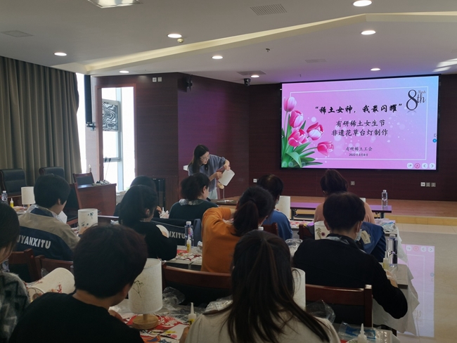 陽(yáng)春三月,桃花盛開(kāi),在這溫暖明媚的日子里,為了慶祝第112個(gè)國(guó)際婦女節(jié),有研稀土工會(huì)于3月8日在燕郊基地舉辦“稀土女神,我最閃耀”非遺花草臺(tái)燈制作活動(dòng)。公司黨總支書記、總經(jīng)理于敦波,公司黨總支副書記、工會(huì)主席許國(guó)棟出席活動(dòng),公司工會(huì)女工委員趙娜主持活動(dòng)。在燕郊基地工作的女同胞參加了本次活動(dòng)。