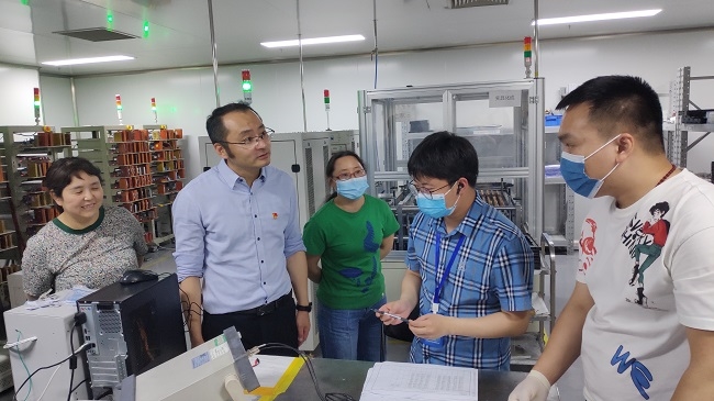 徐冉一行分別來到創(chuàng)新事業(yè)部、檢測事業(yè)部、制造事業(yè)部科研生產(chǎn)現(xiàn)場一線,與現(xiàn)場員工親切交談,詳細(xì)了解科研生產(chǎn)進(jìn)展及員工工作生活情況,代表公司對他們的辛勤付出表示感謝,并送去慰問品。