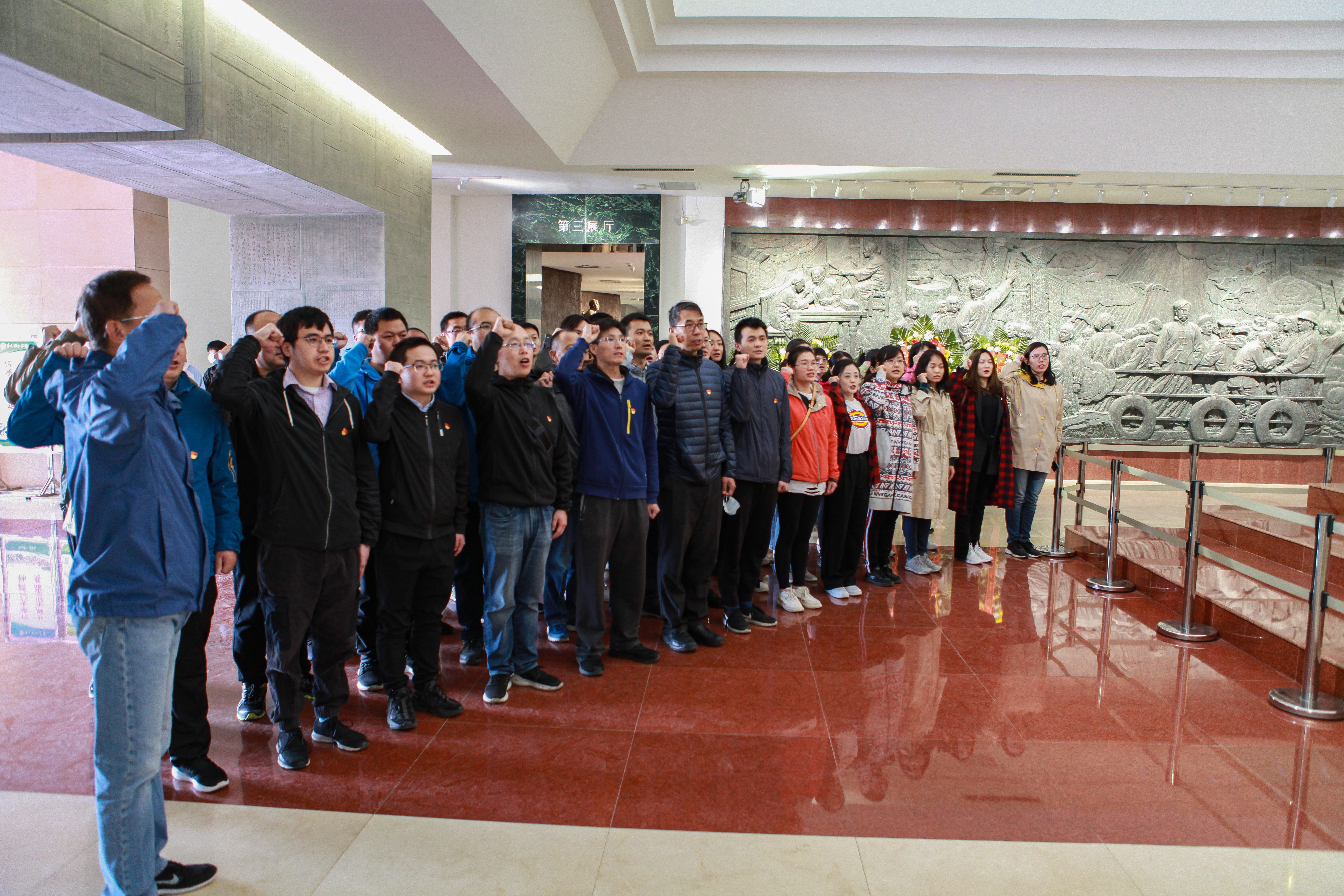 公司60余名黨員干部、積極分子和團(tuán)員青年代表參加。在河北樂亭李大釗紀(jì)念館,國合通測(cè)隊(duì)伍滿懷崇敬之情,參觀了李大釗生平事跡陳列展覽、李大釗廉潔風(fēng)范展覽、李大釗紀(jì)念碑林,通過豐富的館藏資料和文物,學(xué)習(xí)李大釗同志波瀾壯闊的一生以及對(duì)中國革命做出的豐功偉績,瞻仰革命先驅(qū)的偉大人格和崇高風(fēng)范。黨員同志整齊列隊(duì),高舉右拳,集體重溫入黨誓詞。用錚錚誓言,再次宣示為共產(chǎn)主義奮斗終身、為實(shí)現(xiàn)中華民族偉大復(fù)興中國夢(mèng)不懈奮斗的堅(jiān)定信念。在英雄城市唐山,國合通測(cè)隊(duì)伍整齊肅穆,依次參觀了抗震紀(jì)念碑廣場(chǎng)、唐山抗震紀(jì)念館、地震遺址公園。在大量歷史照片、實(shí)物和多媒體景觀中,全方位感受工業(yè)重城唐山突遭重創(chuàng)、浴火重生、再創(chuàng)新輝煌的奮進(jìn)歷史,深入學(xué)習(xí)黨領(lǐng)導(dǎo)唐山人民在同地震災(zāi)害斗爭(zhēng)中鑄就的偉大抗震精神。