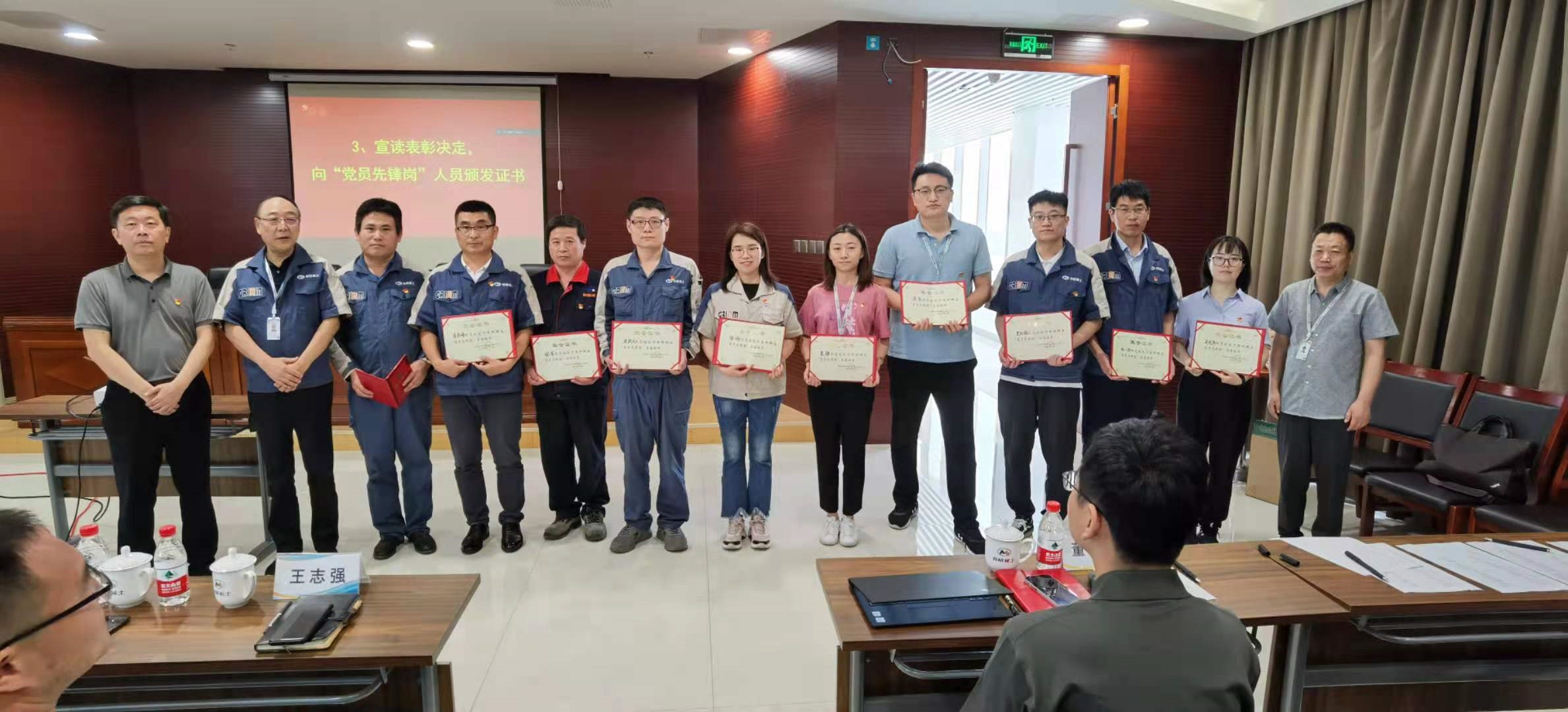 大會第三項,為弘揚正氣、表彰先進、樹立標桿,經(jīng)各部門、子公司推薦,有研稀土黨總支委員會綜合評定,有研稀土黨總支決定授予十六名黨員同志“黨員先鋒崗”稱號。黨總支青年委員劉榮輝宣讀了表彰名單,劉慧舟書記、李紅衛(wèi)教授和李宗安副總經(jīng)理一起向受表彰同志頒發(fā)“黨員先鋒崗”榮譽證書。