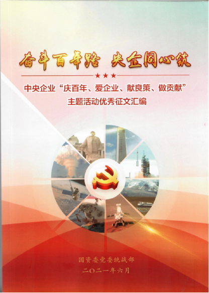 結(jié)合國資委黨委統(tǒng)戰(zhàn)部“奮斗百年路 央企同心筑”主題征文活動,在全集團統(tǒng)戰(zhàn)對象中廣泛動員,組織廣大統(tǒng)戰(zhàn)對象結(jié)合自身經(jīng)歷,講述在黨的領(lǐng)導(dǎo)下奮斗愛國、科研強企,推動集團創(chuàng)新驅(qū)動高質(zhì)量發(fā)展的故事,集中展現(xiàn)集團廣大統(tǒng)戰(zhàn)對象攜手同心、共創(chuàng)偉業(yè)的良好精神風(fēng)貌。向國資委黨委統(tǒng)戰(zhàn)部推薦的《從黨史中汲取奮進力量 用心走好三步路》入選《奮斗百年路 央企同心筑——中央企業(yè)“慶百年、愛企業(yè)、獻良策、做貢獻”主題活動優(yōu)秀征文匯編》。