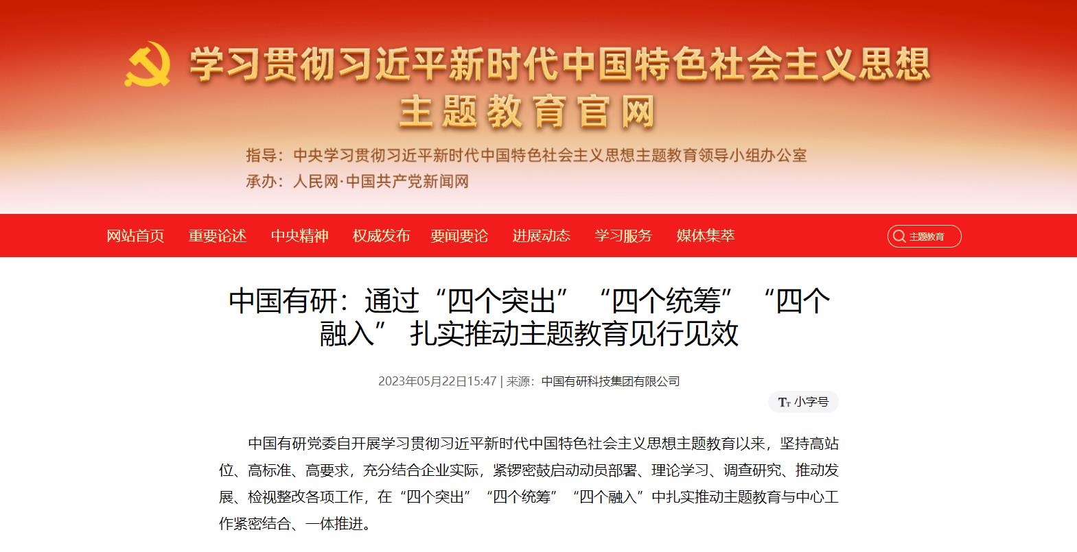 5月22日,國(guó)資委官網(wǎng)發(fā)布《中國(guó)有研:通過“四個(gè)突出”“四個(gè)統(tǒng)籌”“四個(gè)融入”,扎實(shí)推動(dòng)主題教育見行見效》。