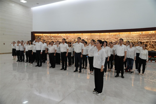 參觀結(jié)束后,全體黨員舉拳宣誓,重溫入黨誓詞、砥礪前進(jìn)初心。