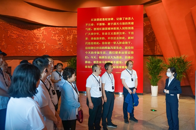 活動中,全體黨員追尋總書記足跡,參觀紅旗渠紀念館,在講解員的帶領下,依次參觀了“序廳”“旱魔”“奇跡”“豐碑”“夢想”“精神”等展廳,了解林縣人民飽受干旱煎熬進而修渠的感人故事,觀看當年修渠使用的工具和大量珍貴的歷史圖片,全面了解了林縣歷史、紅旗渠的由來及建造的全過程。隨后,觀看紀錄片《紅旗渠》,沉浸式重溫那段戰(zhàn)天斗地,“誓把河山重安排”的光輝歷程。