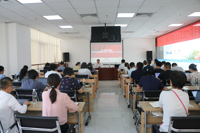 曹泊宇以《深入開展主題教育 培養(yǎng)技術(shù)報國的政治自覺、思想自覺、行動自覺》為題講授專題黨課,從繼承弘揚偉大建黨精神、以中國式現(xiàn)代化推進(jìn)國資央企創(chuàng)新發(fā)展、建設(shè)適應(yīng)新時代要求的干部隊伍三方面,展開系統(tǒng)翔實的解讀闡釋。