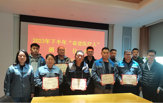 隨后,公司領(lǐng)導(dǎo)班子成員為2023年下半年的“奮進醫(yī)療人”頒獎,進一步突出示范引領(lǐng)作用,鼓勵大家學(xué)習(xí)身邊榜樣,立足崗位、爭創(chuàng)一流,堅持以實干擔(dān)當(dāng)推進有研醫(yī)療高質(zhì)量發(fā)展。
