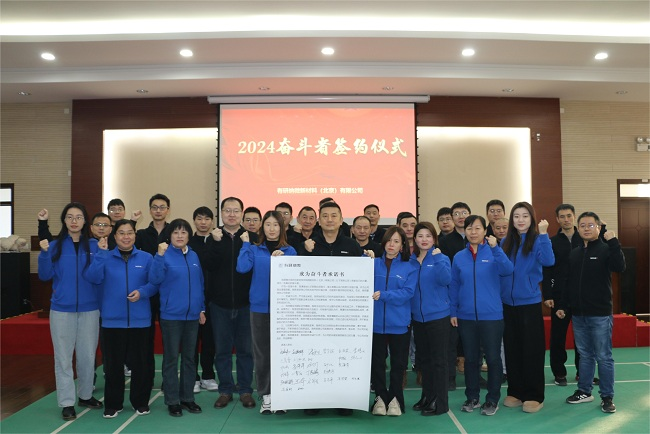 為深入開展學(xué)習(xí)貫徹習(xí)近平新時(shí)代中國特色社會(huì)主義思想主題教育,踐行、發(fā)揚(yáng)共產(chǎn)黨人的奮斗精神,樹立全員爭創(chuàng)一流的競爭意識(shí),2023年12月29日,有研納微黨支部組織開展2024年度“奮斗者”簽約活動(dòng),公司總經(jīng)理、黨支部書記朱捷以“奮斗者”為題帶領(lǐng)全體員工作出鄭重承諾。