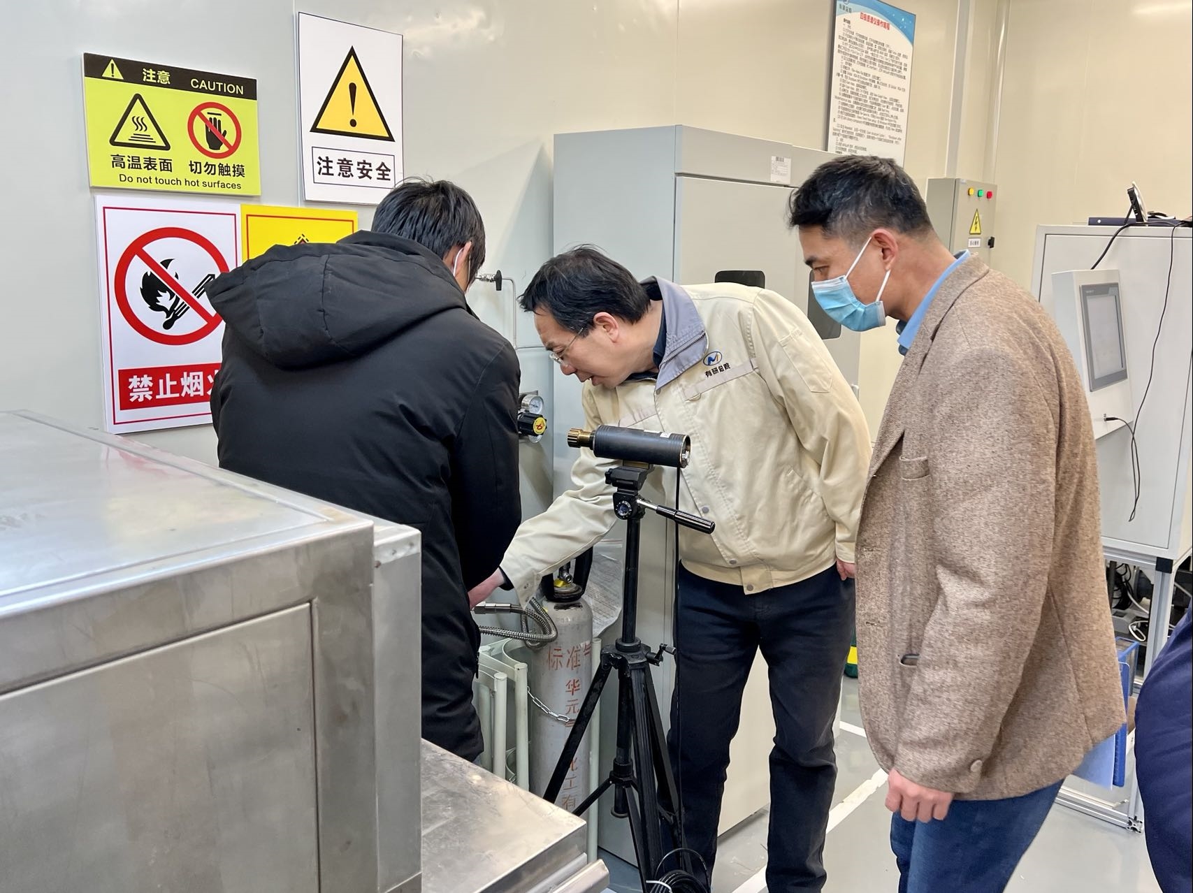 檢查組一行先后到達(dá)了先進(jìn)電子材料事業(yè)部9212潔凈間、新能源與生態(tài)環(huán)境材料事業(yè)部9201實驗室等重點區(qū)域,查看了安全防范措施,積極排查安全隱患。在檢查中發(fā)現(xiàn)氣體種類標(biāo)識不明顯,防靜電措施不完備,6S管理不完善等問題,檢查組督促相關(guān)部門盡快整改,全面消除安全隱患。