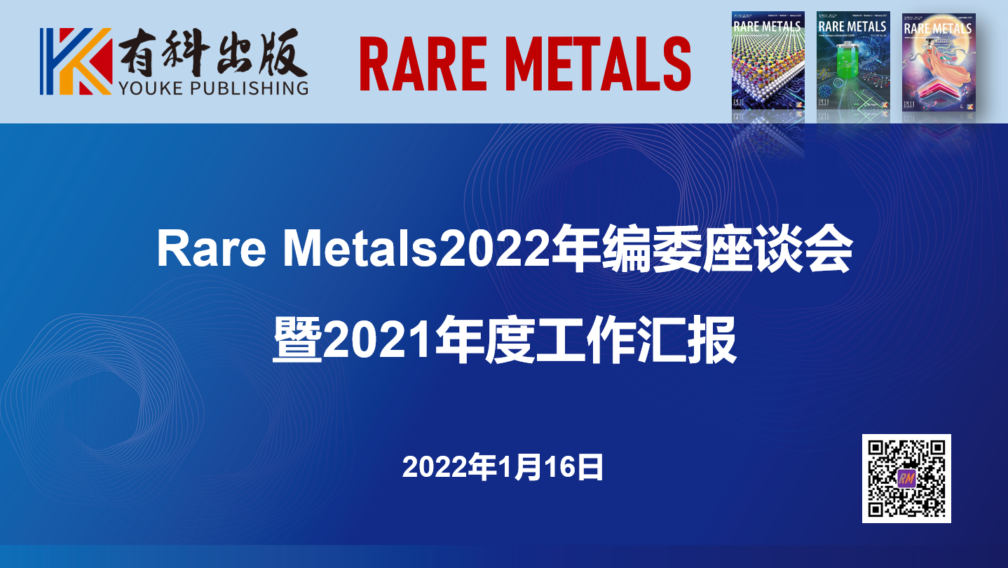 1月16日,有研集團(tuán)主辦期刊《稀有金屬(英文版)》2022年編委座談會(huì)暨2021年度工作匯報(bào)在線上線下同步召開(kāi)。副主編北京大學(xué)侯仰龍教授、清華大學(xué)林元華教授、北京航空航天大學(xué)蔣成保教授、青年編委及編輯部成員共100余人出席會(huì)議。會(huì)議由有科出版總經(jīng)理錢(qián)九紅主持。