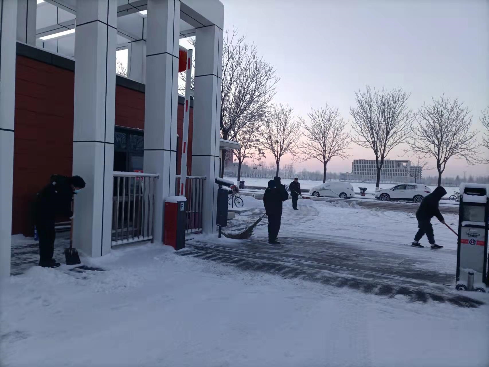 2022虎年初雪如期而至,大雪紛飛銀裝素裹,有研興友懷柔園區(qū)管理部根據(jù)天氣預警信息,提前做好充足準備,備全應急除雪鏟冰物資,增加應急值守人員,確保供暖設(shè)施加溫運行,全力應對暴雪天氣,防范因降雪、積雪、結(jié)冰造成的不利影響。