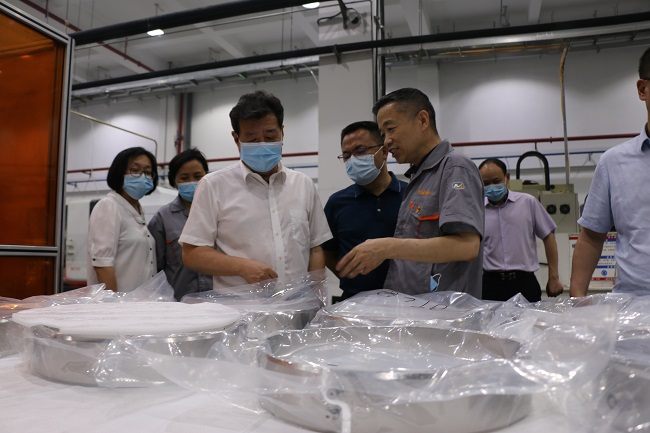 6月21日,有研集團黨委委員、副總經(jīng)理王臣一行到有研億金調(diào)研疫情防控、防汛、山東億金基地建設(shè)等工作。有研新材黨委書記、董事長楊海陪同調(diào)研。