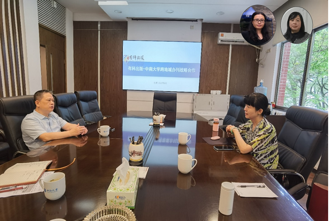 6月24日,有科出版董事長錢九紅一行赴中南大學洽談期刊出版合作事宜。中南大學副校長郭學益,中南大學出版社社長吳湘華,副社長楊保華、黃飛出席會議,中國有色金屬學會副理事長兼秘書長高煥芝、副秘書長李芳線上參會。